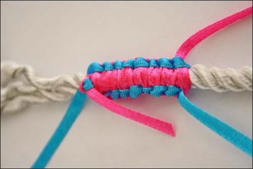 然后绕着尼龙绳上下交叉缠绕,如下图所示。(注意要耐心)