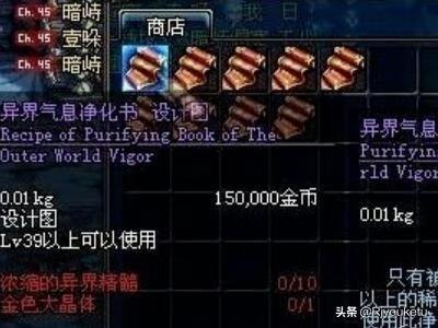 2、购买克伦特的商店中出售的《异界气息净化书》,售价15万游戏币。