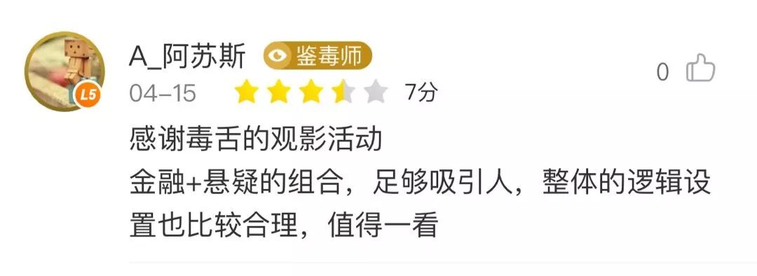 更欣慰的是,从上周末毒舌举办《幕后玩家》的抢先场反馈看,这,似乎,仍是一部值得看的正常电影。