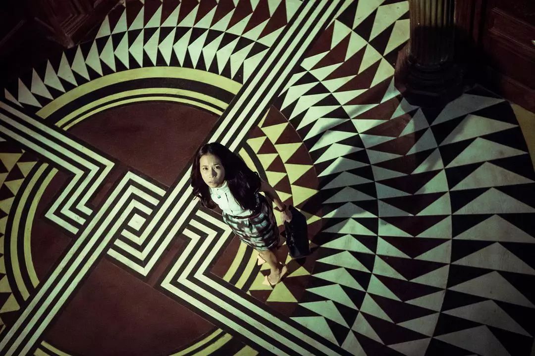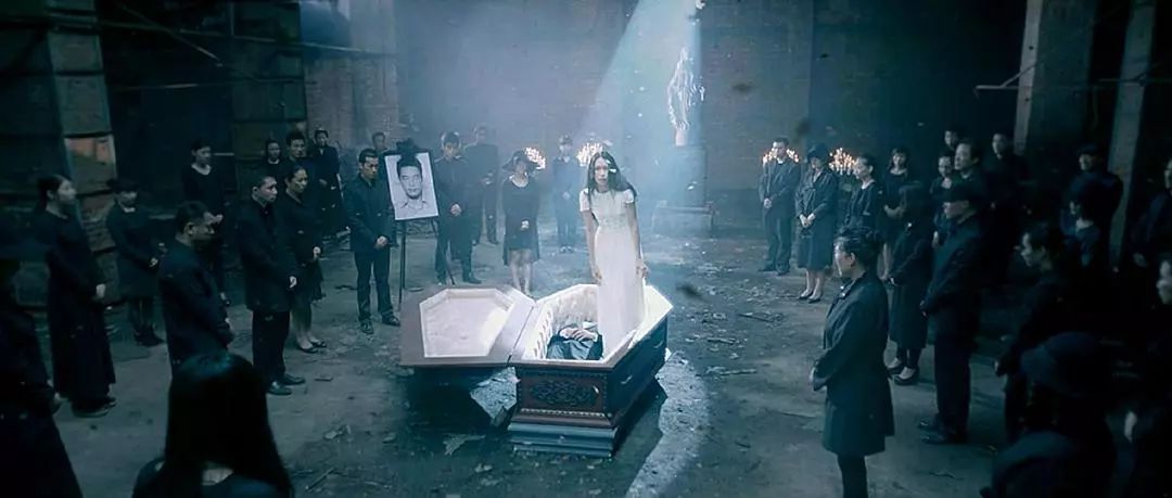 不规则几何图案的地板、众人围观的开棺现场、铺满冷色调家具的工作室……既密布悬疑,又与剧情相辅相成出更强烈的视觉冲击力。