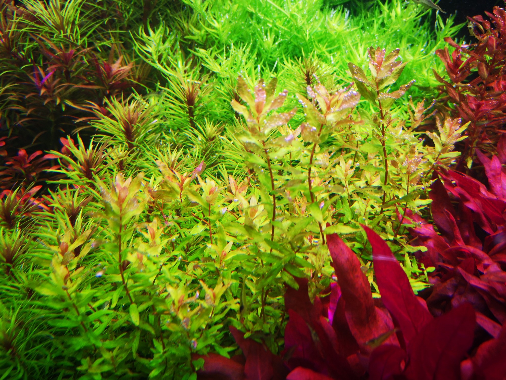 所以,阳性草和阴性草最好不要搭配在一起水族箱内,二者选其一便好,若是一定要搭配着种植,那么可以把比较阴性草种植在高大的阳性草下面,这样可以遮掉一部分的光照强度,使之变为弱光。