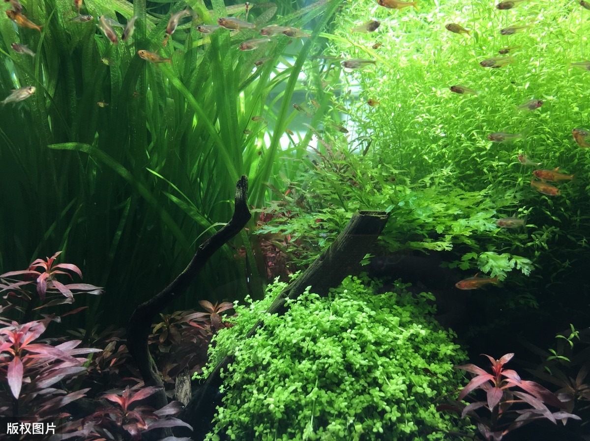 光照强度变小,水草的光合作用就会降低,从而影响水草的生长速度,导致了水草不易生根,容易死去。此时的水草容易大面积腐烂,从而影响水族箱里的水质。