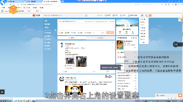 2、点击界面右上角的设置图案,在下拉菜单中选择“账号设置”;