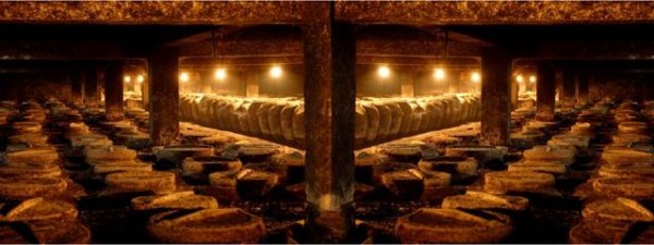 走过一棵茂盛的黄杨,推开一扇厚重的拉环木门,沿着幽暗的通道拾梯而下,一种来自地底的气息,混合着沁凉、湿润与酽酽酒香就会扑面而来,目之所视极昏暗,嗅觉就愈发敏锐,酒香透骨,令人醺醺然。