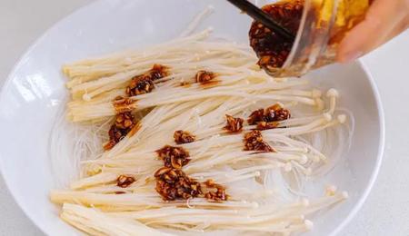 8.碗底铺上粉丝和金针菇