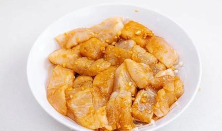 7.将鱼块和2/3的料汁拌匀