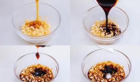 5.将蒜蓉、生抽、蚝油、盐、芝麻油调一个酱汁待用。