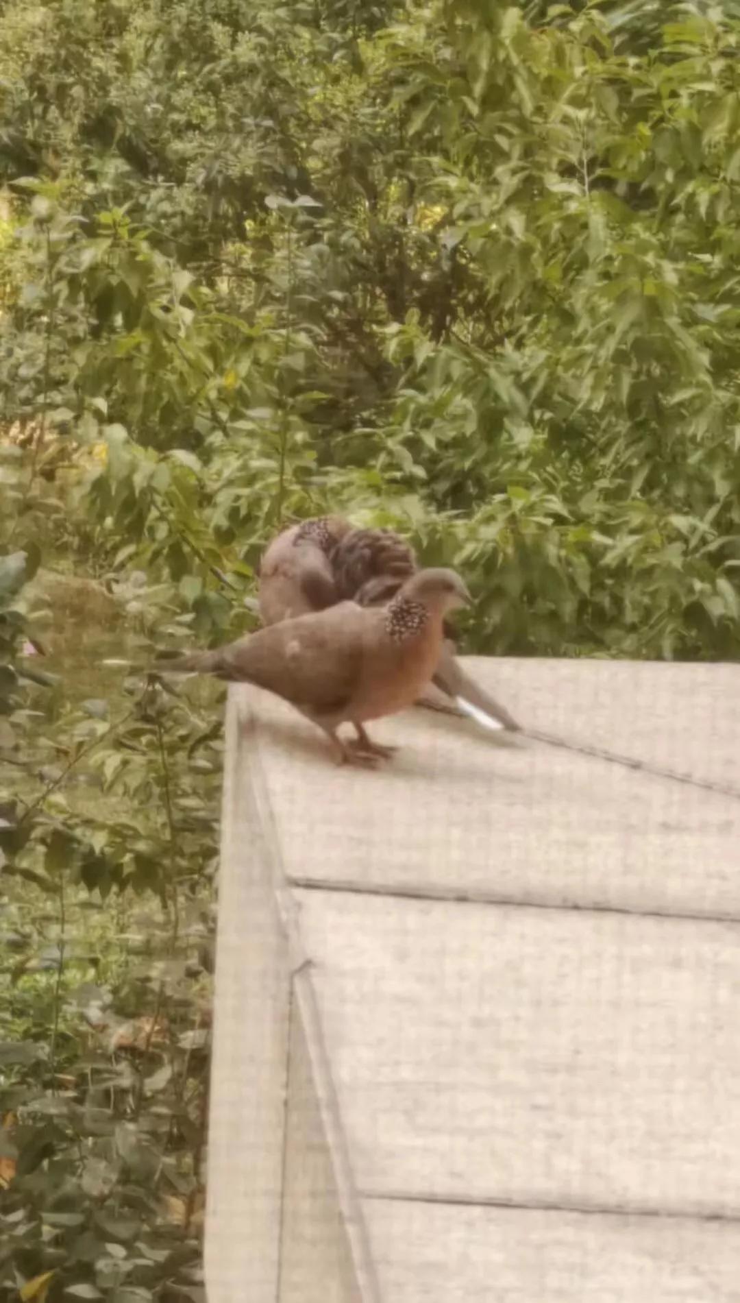 我不知道是什么鸟,于是就把视频发到了微信朋友圈,不一会就有人回复说可能是斑鸠,我只是听说过斑鸠,可从来没见过,于是我就好奇的在网上查询关于斑鸠的各种资料,得知确实是斑鸠,而且斑鸠进家还是大吉的征兆。
