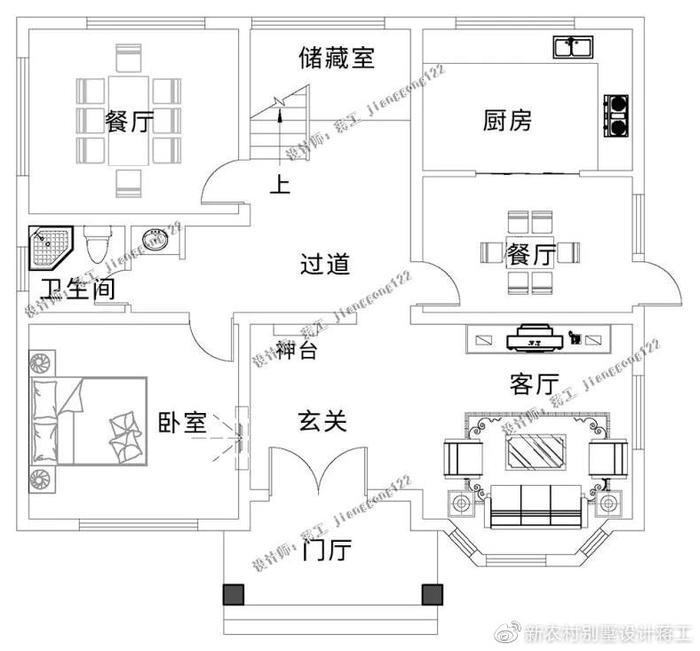 经典的一款欧式风格三层别墅设计,端庄明朗。完美的点线,精益求精的细节处理,带给家人不尽的舒服触感,沉稳大气的米色外立面点缀精致八角窗和咖色线条,在农村清淡朴素的乡村背景中脱颖而出,室内布局科学合理,同时兼顾乡村传统居住需求。入户玄关设计神龛,农村必不可少的配置。客厅与玄关开放式设计空间更通透。厨房和餐厅设计在北侧并带有侧门,出入采买很方便。西侧的卧室和餐厅,家庭聚会的时候娱乐空间少不了。二楼二间大套卧,衣帽间,内卫、书房一应俱全,配套很完美。三层的阳光房韵味十足,实用性强。