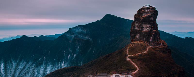 梵净山海拔2572米。梵净山是云贵高原向湘西丘陵过渡斜坡上的第一高山,从山顶到山脚落差达到两千米,不仅是横亘于重庆、湖北、贵州以及湖南四省(区)的武夷山脉的最高主峰,也是元江和乌江的分水岭。