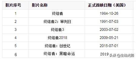 终结者6:黑暗命运 正在热映, 小编为大家整理了, 终结者系列的上映时间, 补课专用