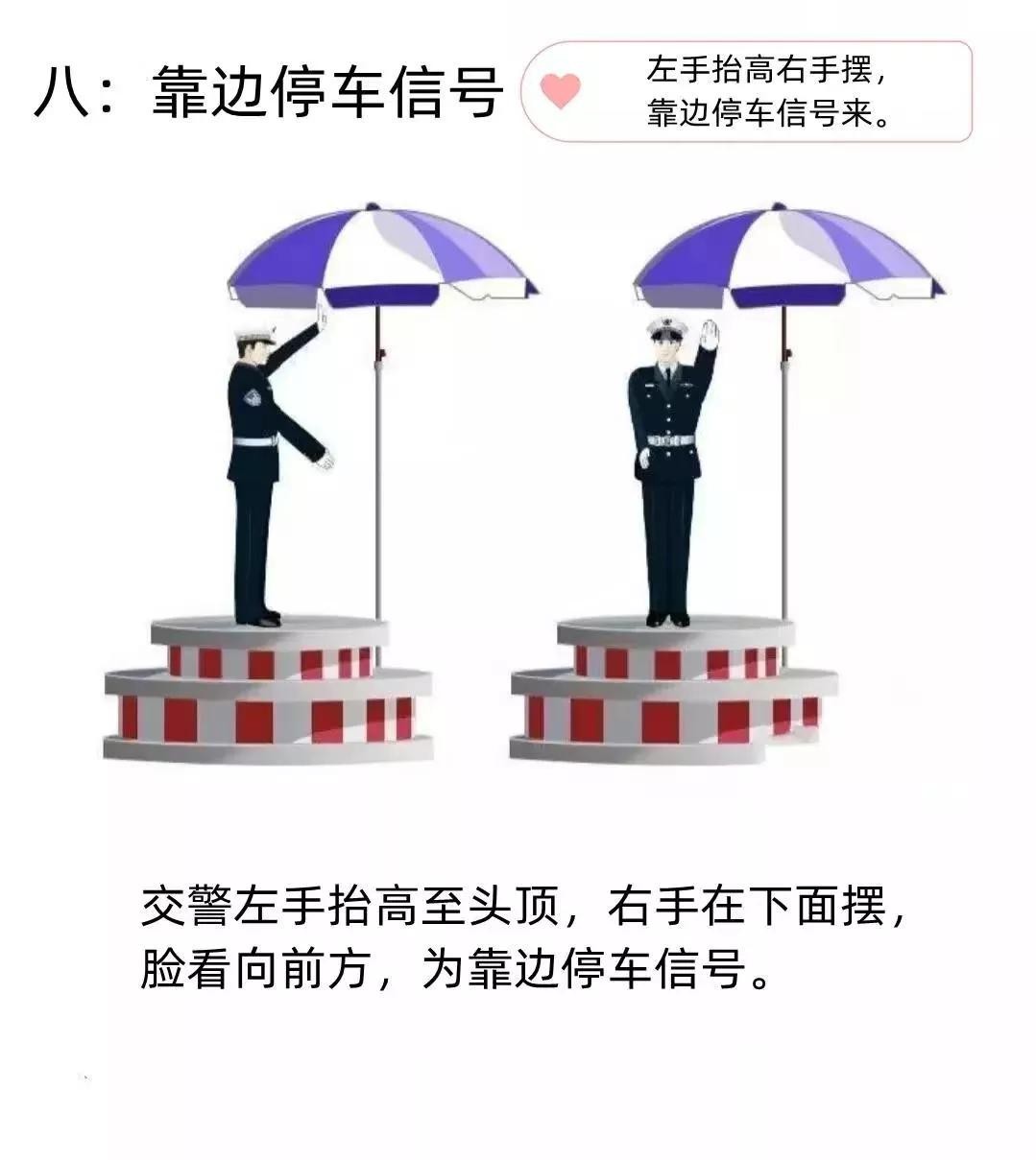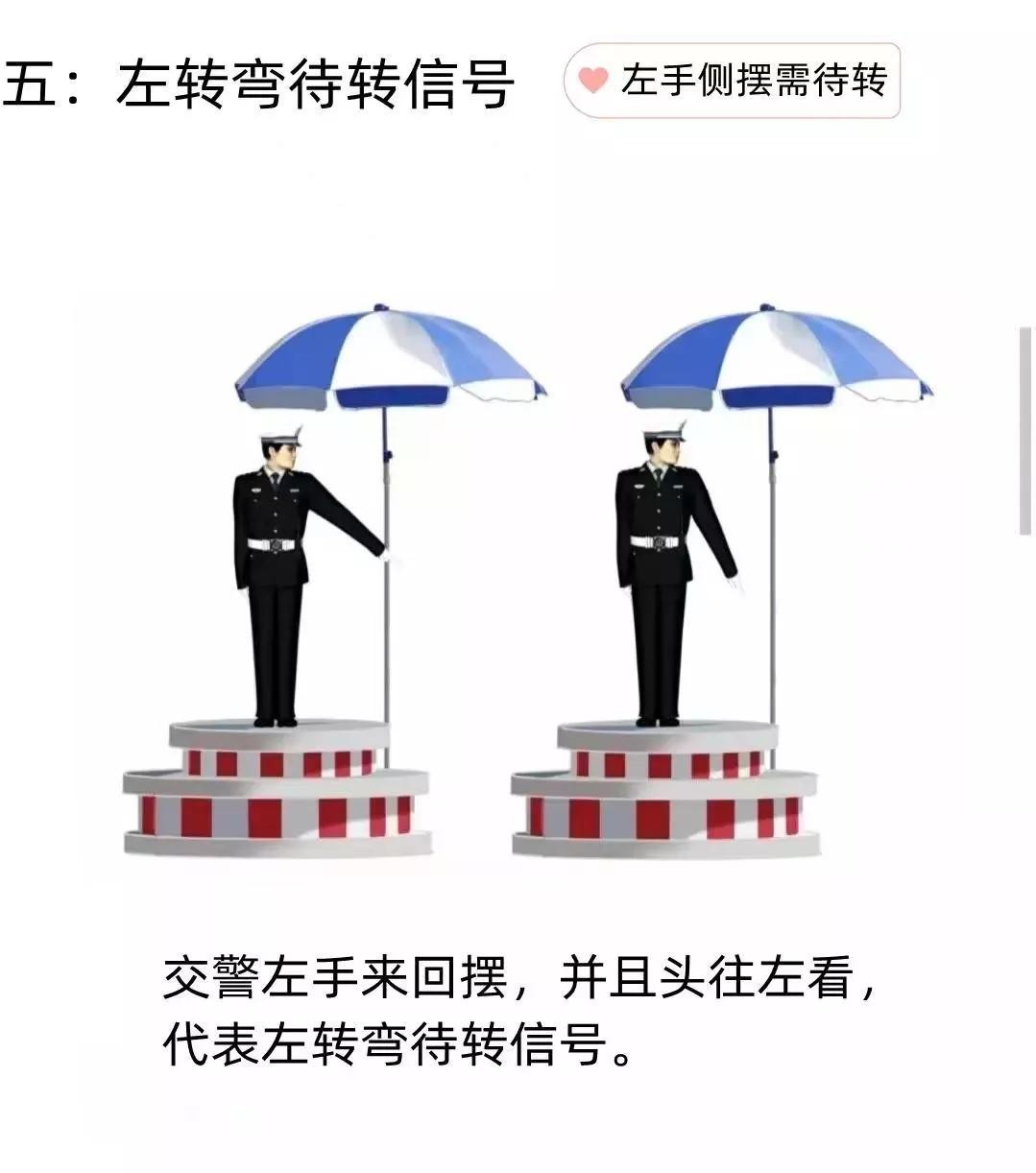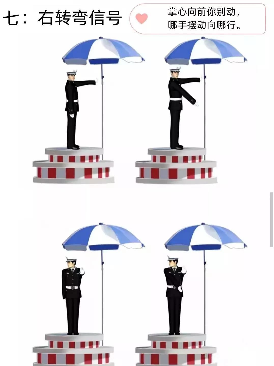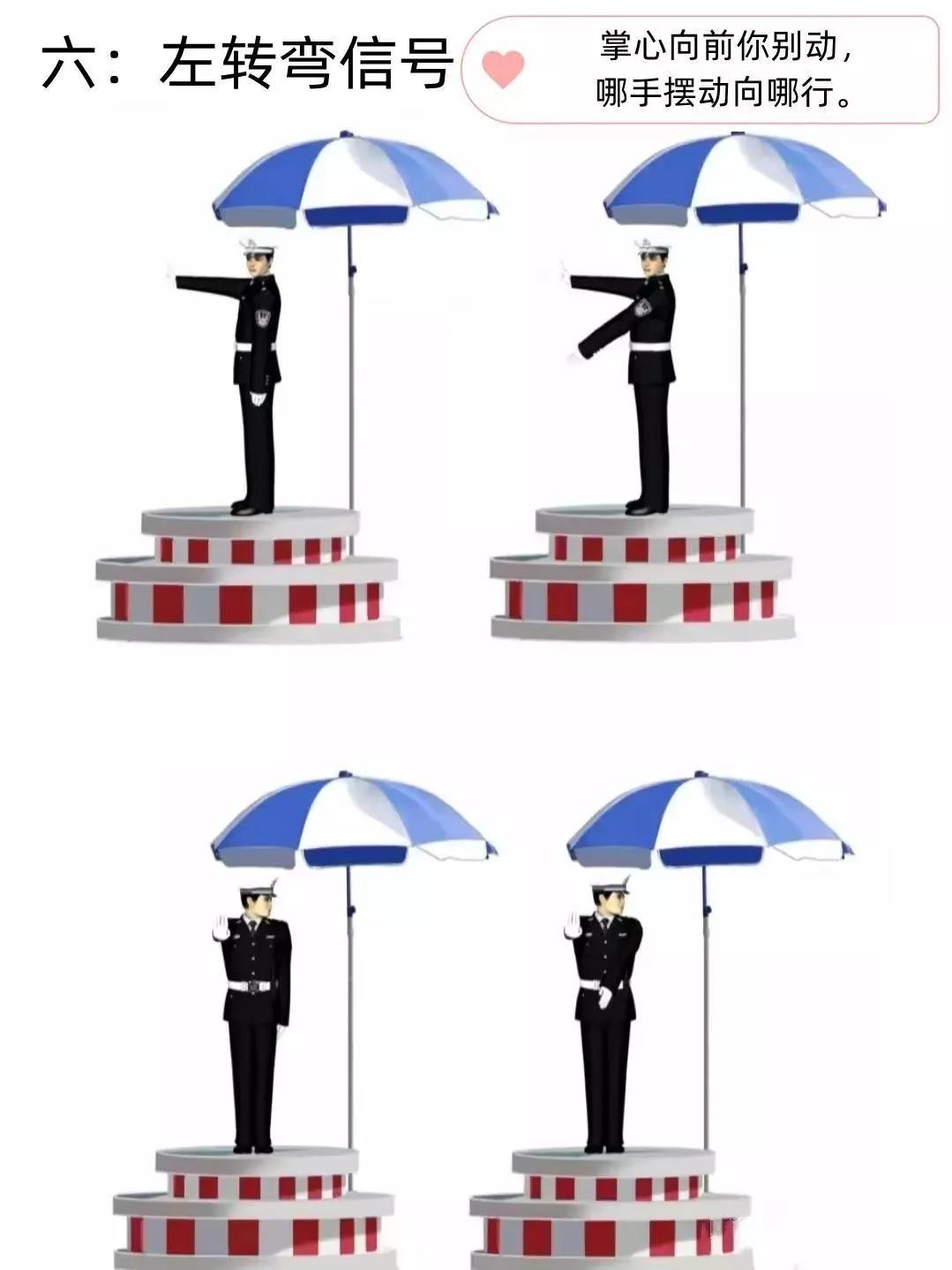 今天小编就把收集的科一手势总结分享给大家,上面都有顺口溜辅助记忆,警察叔叔做的手势跟着比划比划,这样,考试就不是问题啦!