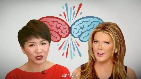 CGTN女主播刘欣(左)和美国女主播翠西·里根