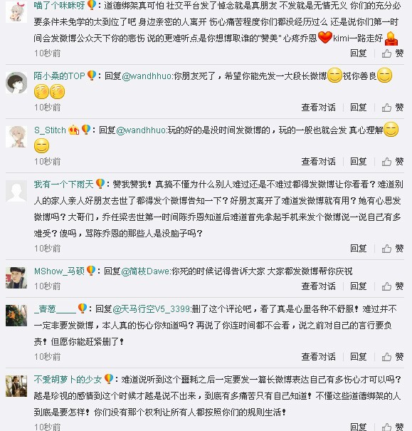 对此,网友纷纷留言回手:“严峻品德绑架。真正伤心惆怅哪偶然间发动态作秀给别人看”、“乔恩如今肯定瓦解了,他们是去世党啊!要是你的去世党自尽了,你还故意情发微博吗?”
