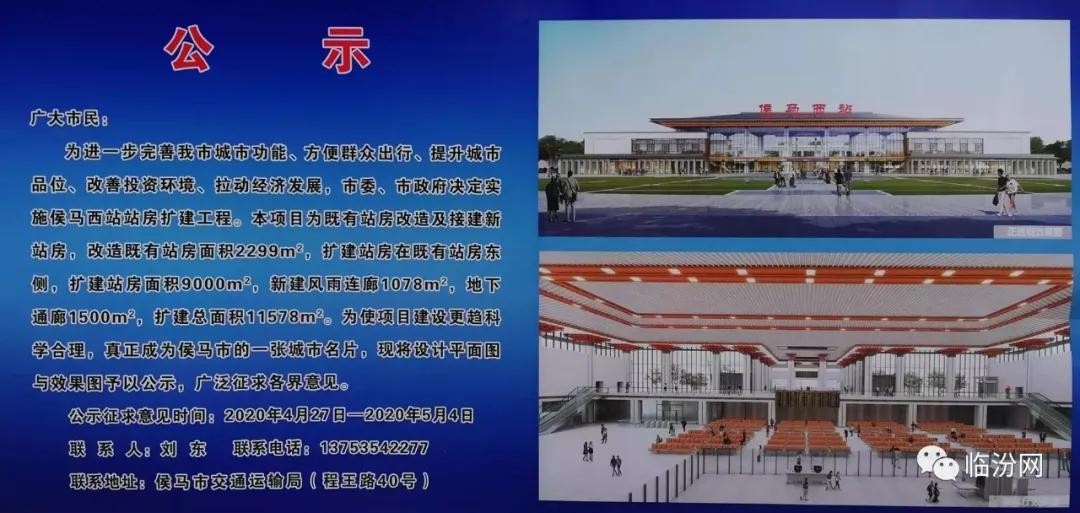 网友爆料:近日,在侯马新田广场,公开了侯马西站的扩建方案,一起来看看