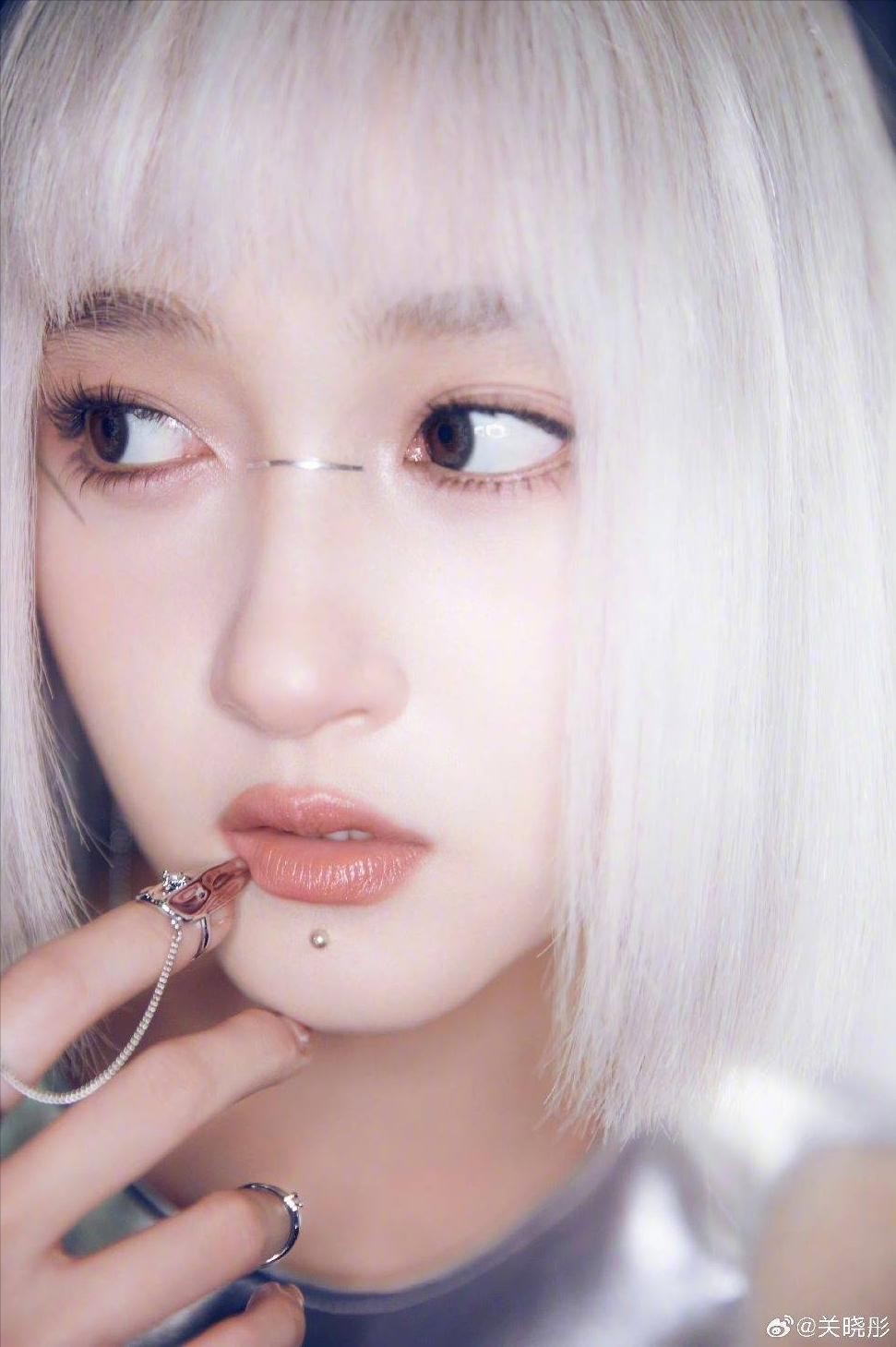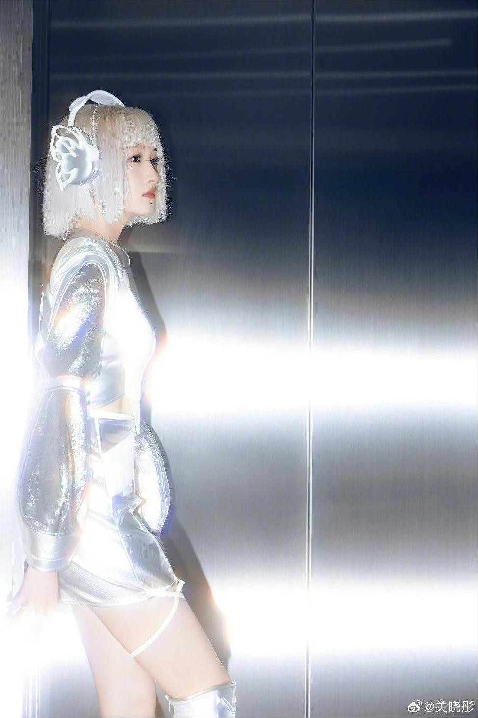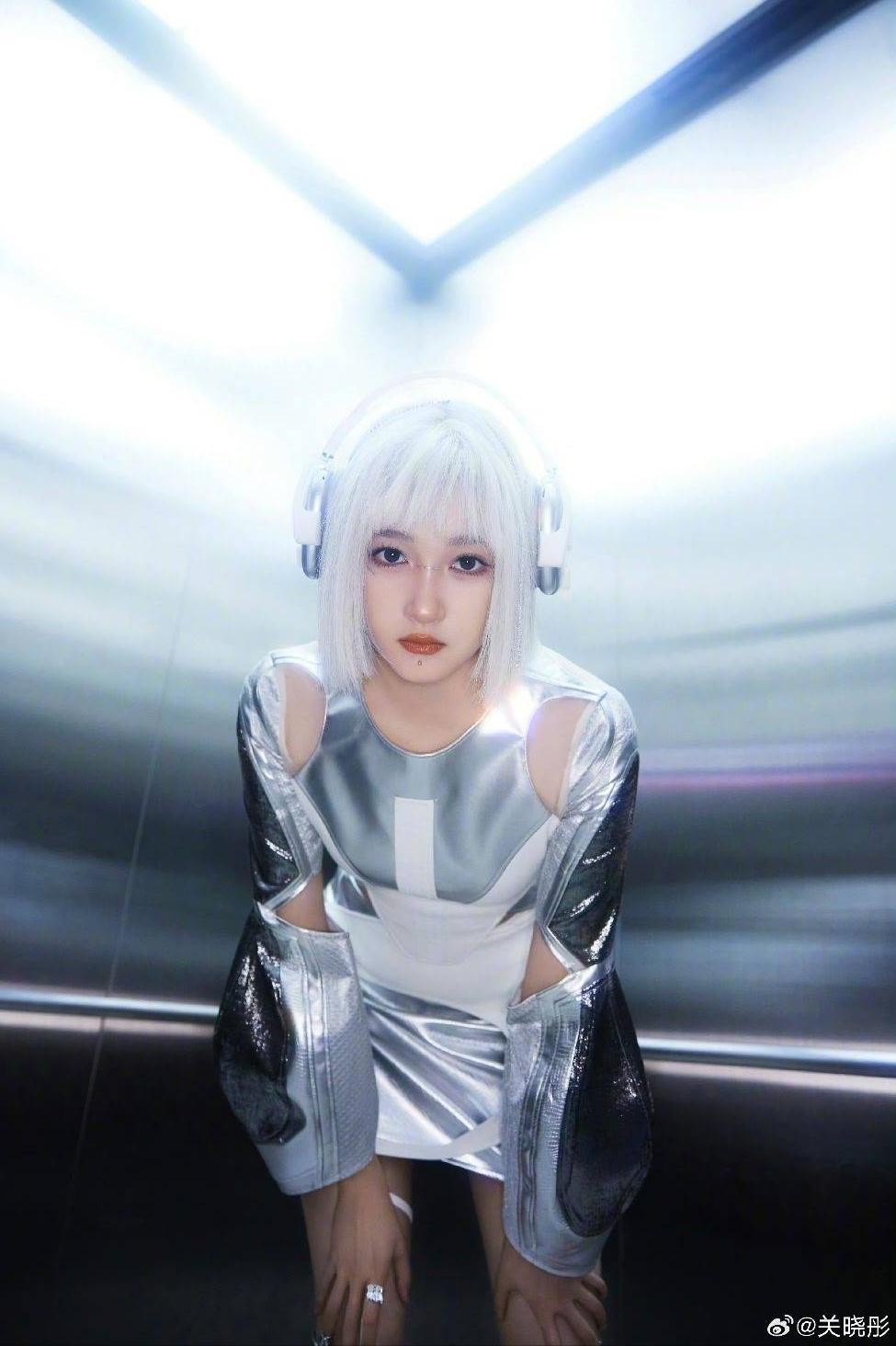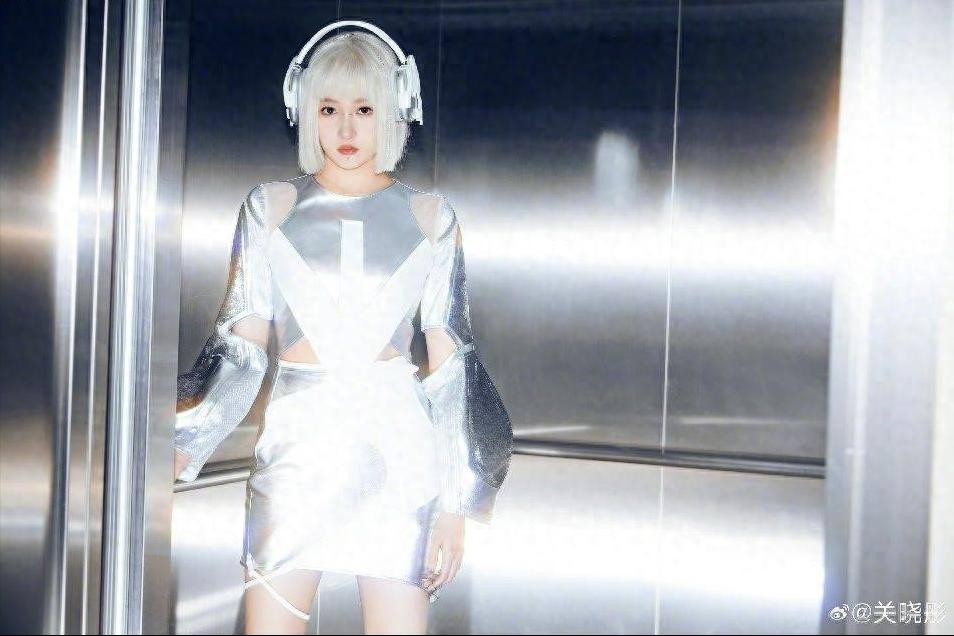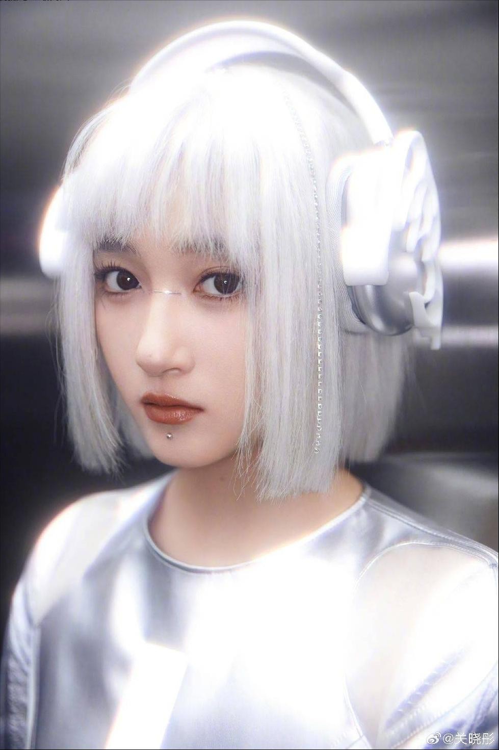 关晓彤展现全新的造型风格!她身着银色发色和机械般的妆容,散发出浓厚的科技氛围,几乎不可思议地美丽。这个造型仿佛来自未来,宛如一位机械美少女。真是太令人喜爱了!