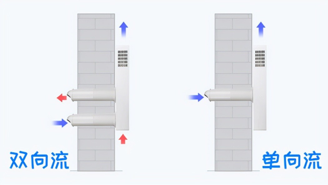 双向流可以实现同时进风和排风,由于内置有双风扇,所以一个可以将室外的空气过滤后送入室内,另一个则将室内污浊空气排出室外。