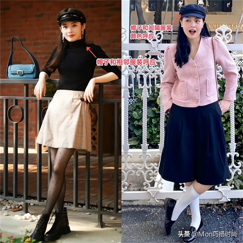 不管是圆脸的贝雷帽还是方脸的军帽,都得和整体搭配协调,才能大放异彩。就先从最简单的配色开始吧!