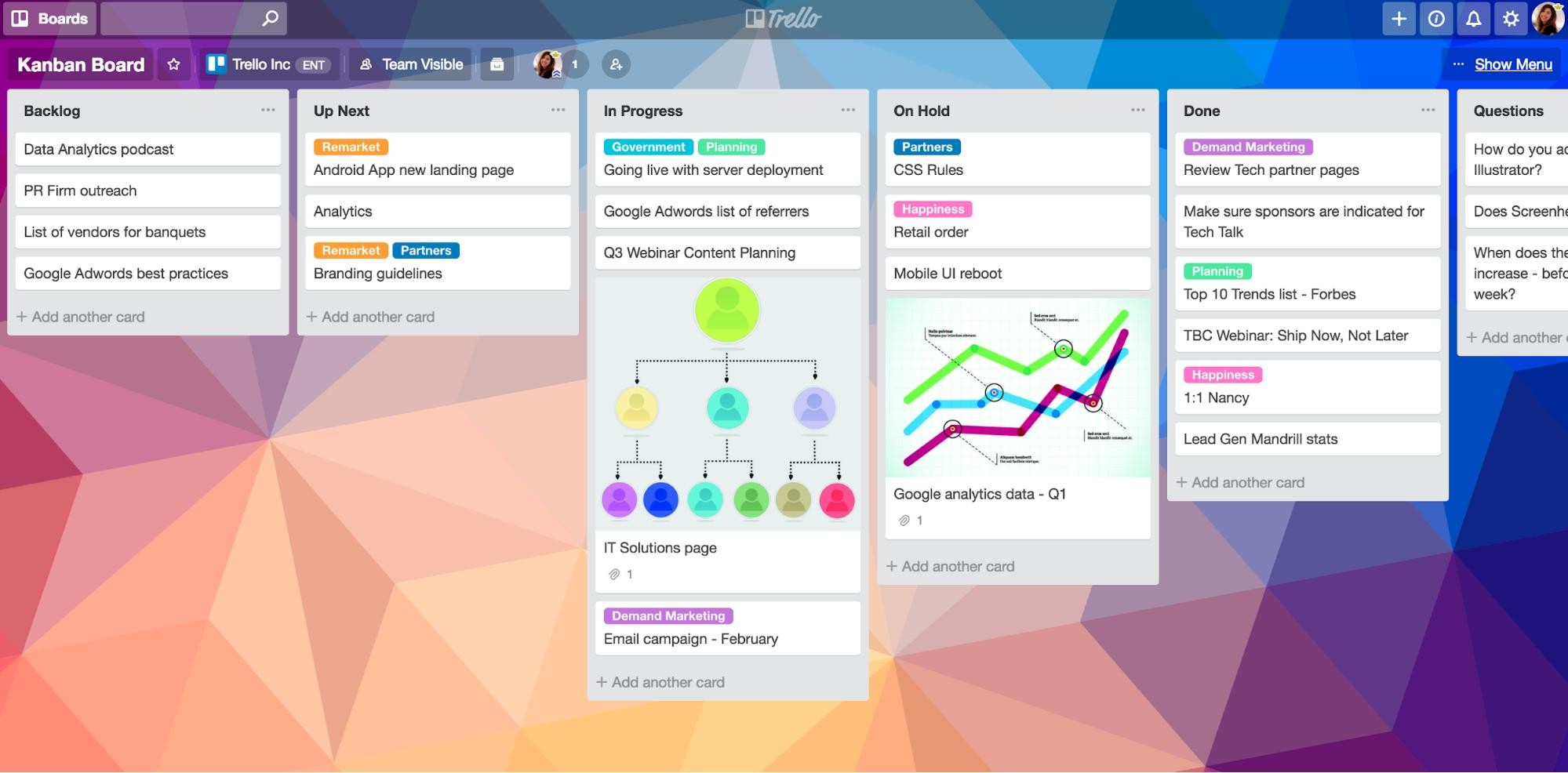 例如,可以为“待办事项”,“上一步”,“进行中”和“完成!”创建列表。每个任务都组织成一张卡片,可以在队列,排队和完成时在列表中移动。