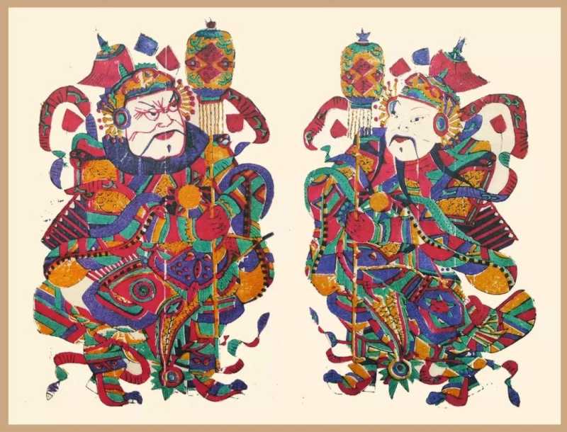 贴门神要注意两张人物脸是相对的,不要贴反。